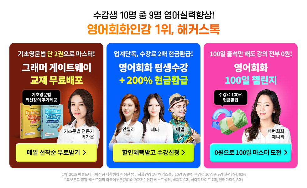 1위 해커스톡 영어전문가가 실력향상을 보장합니다!